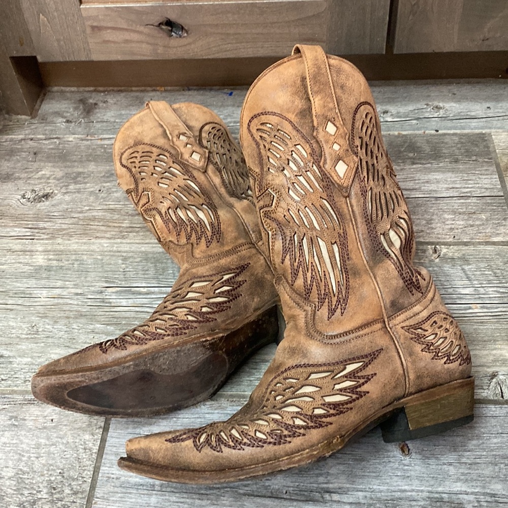 Distressed Wing and Cross Inlay Snip Toe 9.5